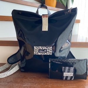 Tale komplet je pa eden lepših v Šikamina zbirki. Prav za vsako priložnost, športno ali elegantno damo. V elegantni lak črni. Nahrbtnik ima okrasno zaponko.